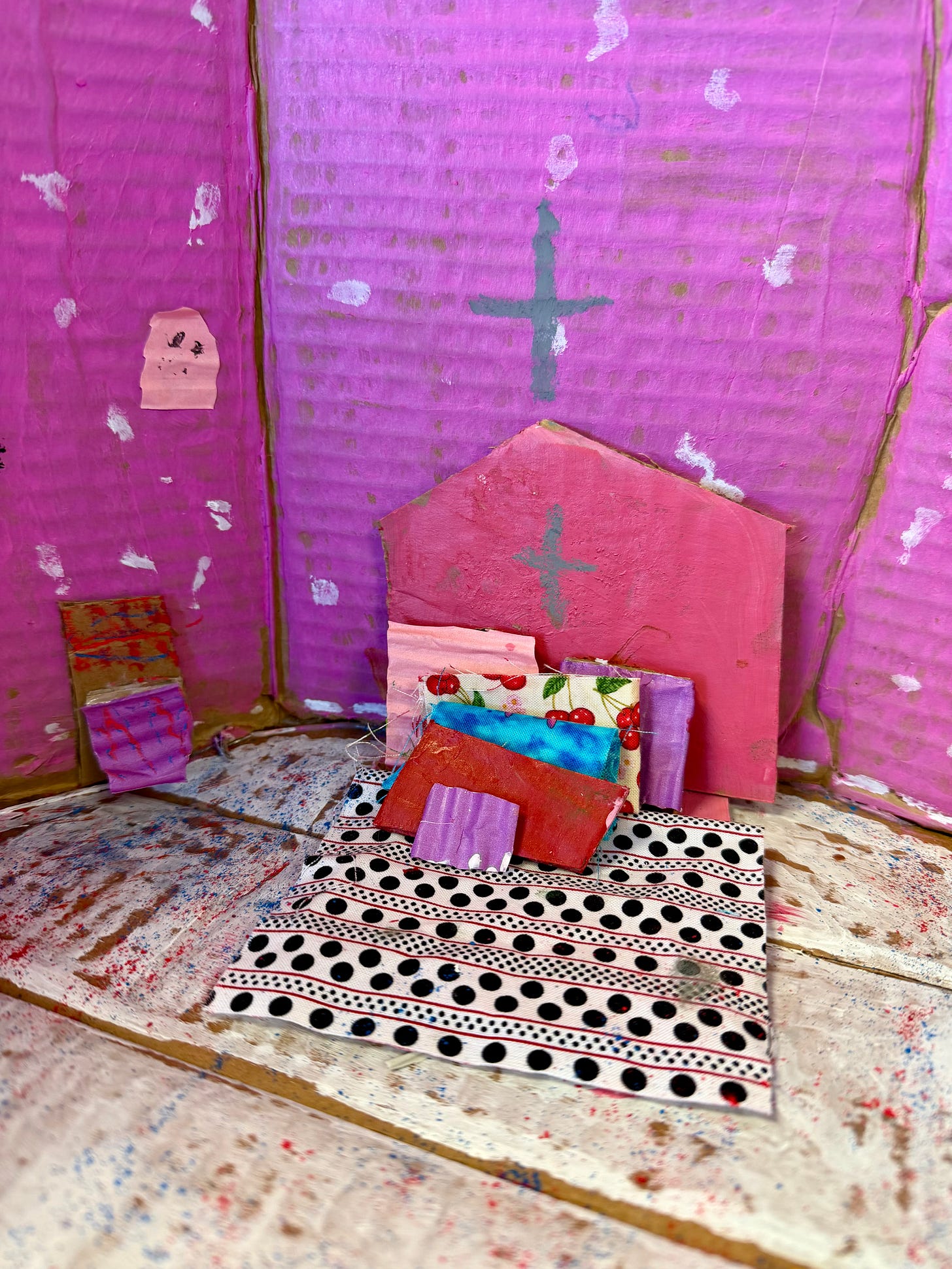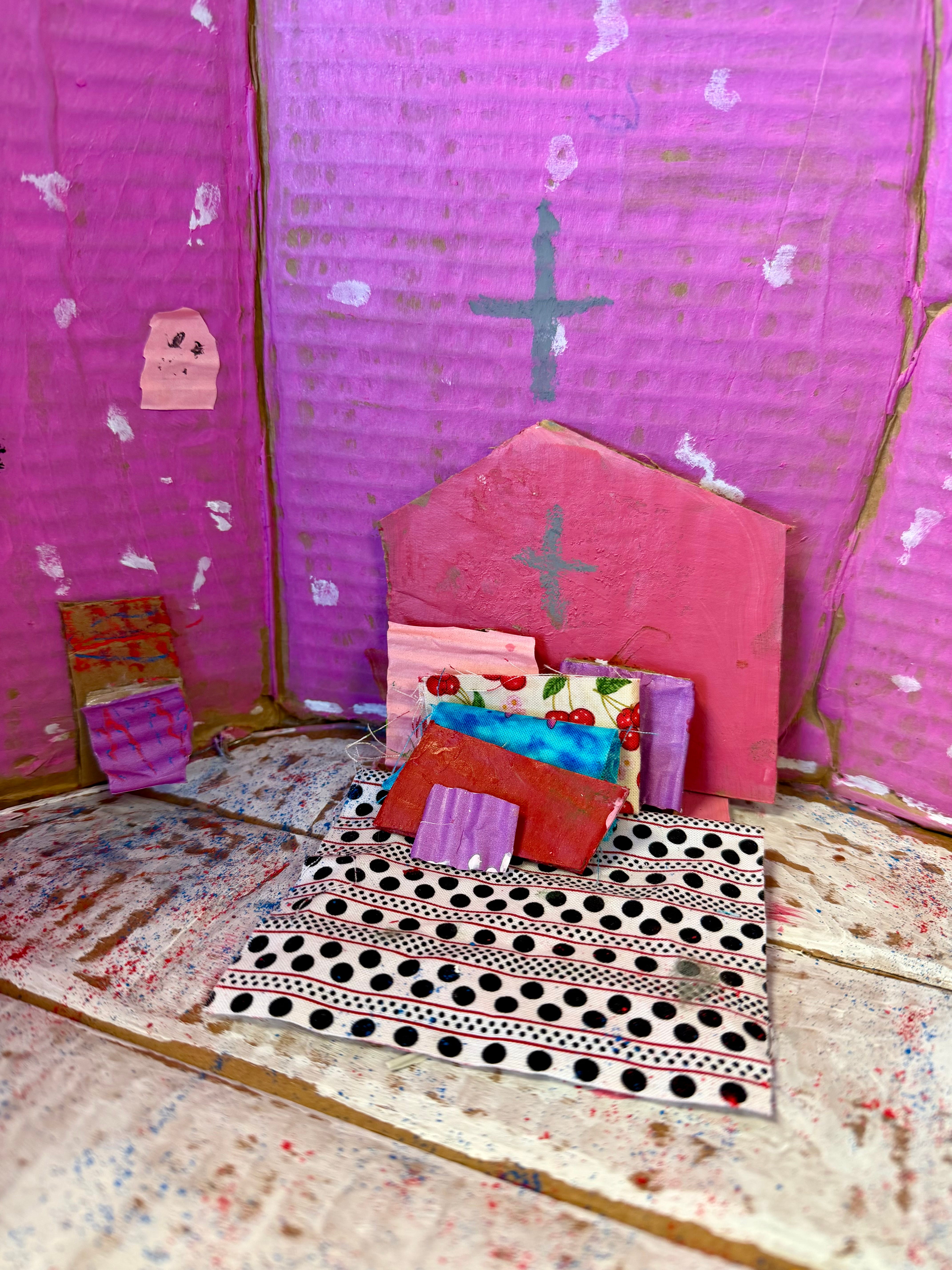 After studying traditional New Mexico architecture, including pueblos, this third grade student designed a small-scale interior as part of a larger architectural structure using cardboard, paint, and fabric. The project explored architectural form, spatial relationships, and surface detail, emphasizing hands-on experimentation and the translation of cultural study into an imaginative, personal space.
