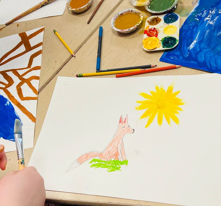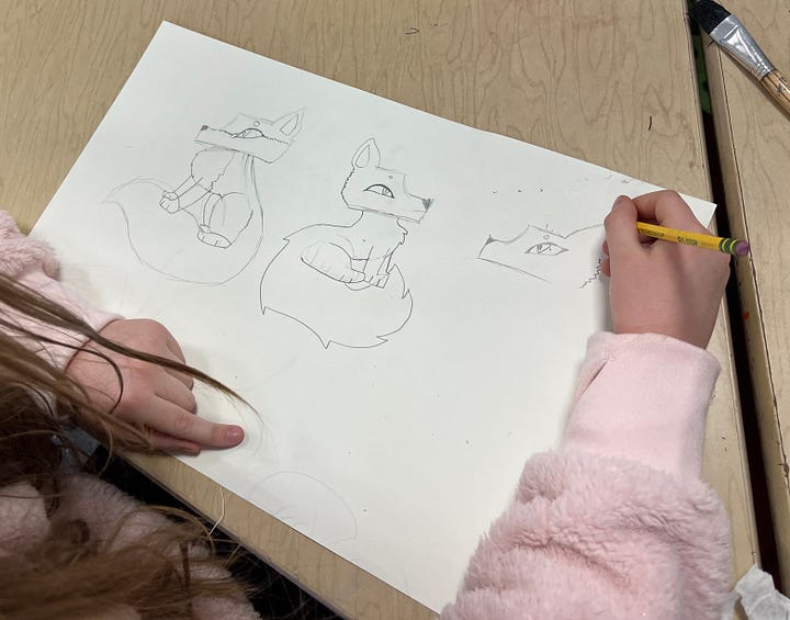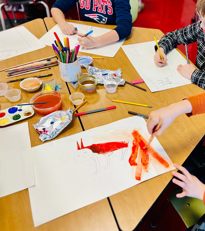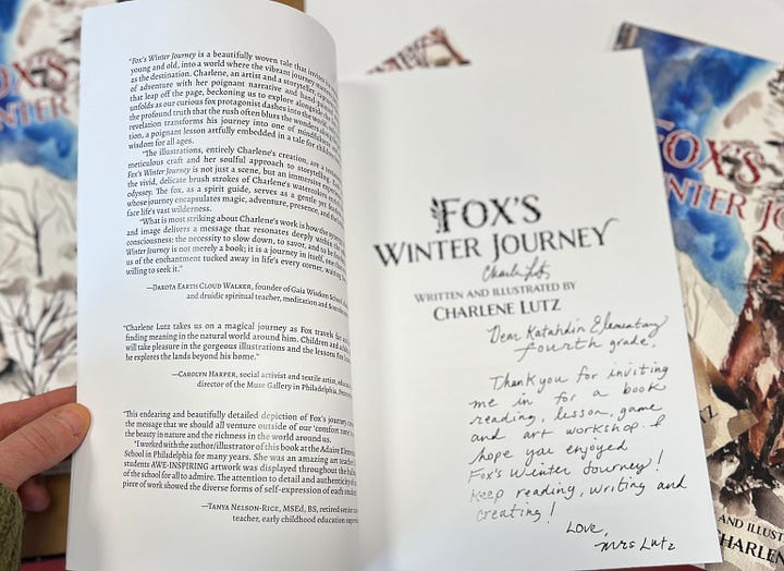 Fox’s Winter Journey interdisciplinary workshops for children. Stacyville and Patten, Maine