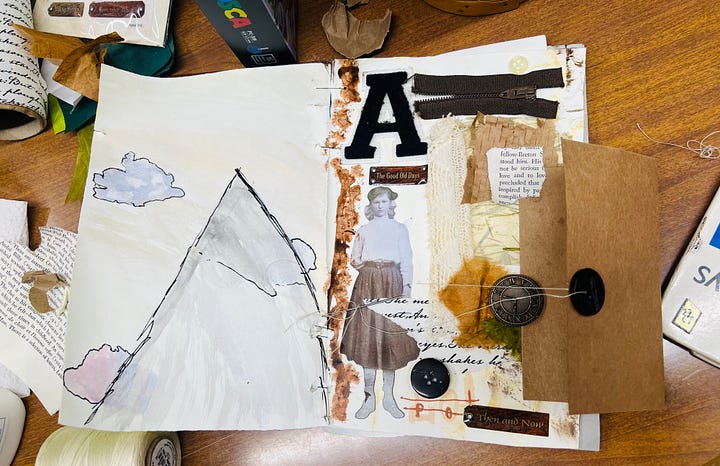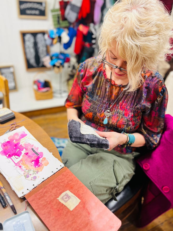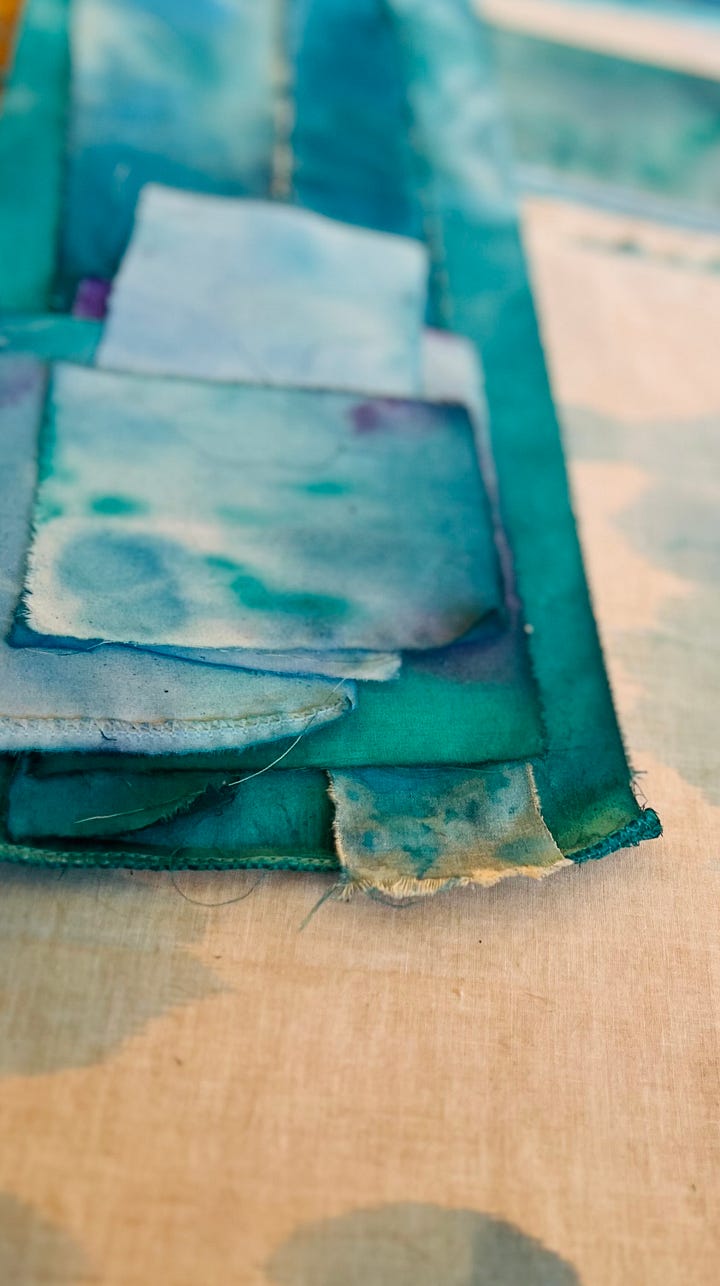 Drawn to blue this week. Vintage scraps found thrifting in Presque Isle, Maine